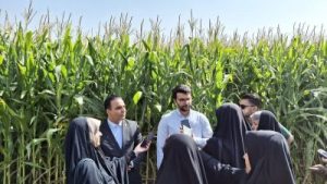 خبرنگاران سپس از زمین زراعی ذرت دامی بازدید کردند. جنگی توضیح داد: «ذرت تولیدی به عنوان خوراک دامهای مجموعه مورد استفاده قرار میگیرد و بخشی از آن نیز برای تأمین نیازهای دامداریهای اطراف اختصاص داده شده است. زمینها به صورت یکپارچه و منظم کشت شدهاند و کانالها و مسیرهای آبیاری طوری طراحی شدهاند که مصرف آب به حداقل برسد و برداشت محصول به حداکثر برسد.»